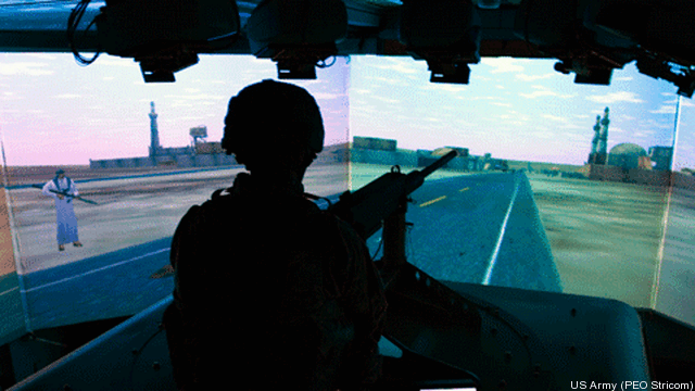 While Army leaders hasten to say they don’t want to do away with live training in the field, they see new – and inexpensive – ways to supplement it with simulations. “Some people almost do jack into the Matrix,” said Col. Pat White, deputy commander in charge of training for the Army’s Combined Arms Institute at Fort Leavenworth, Kansas. “You can’t replicate bullets flying at you, you cannot replicate the mortars and the rockets that are in combat itself, the physical-ness of that; but what we can replicate is the complexity of that.”