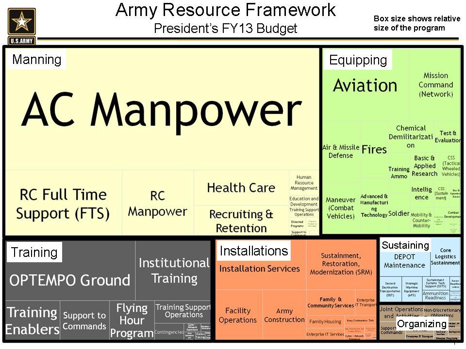 Manpower costs dominate the Army budget, dwarfing all other expenses, from training to equipping to running bases, as the official graphic above makes clear. (Click on the image to see it full-size). Army spending on manpower soared 54 percent from 2000 to 2013 — but the number of soldiers is only 4 percent higher. Base pay has risen by over 50 percent, set-asides for retirement pay by over 65 percent, housing allowances are up over 300 percent.