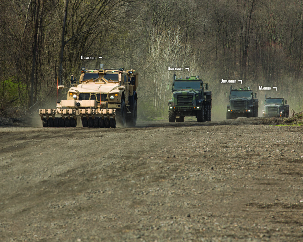 In fact, Oshkosh builds the MTVR itself and first installed TerraMax on one in 2004, when the self-driving truck competed DARPA’s 2004 robotics “grand challenge.” Subsequently the Marine Corps Warfighting Laboratory picked up the project and experimented with using TerraMax MTVRs for unmanned supply convoys. Oshkosh has also done more limited tests installing TerraMax on two Army cargo trucks, the FMTV and PLS. But the Humvee-like M-ATV is a different class of vehicle and route-clearance a very different mission.