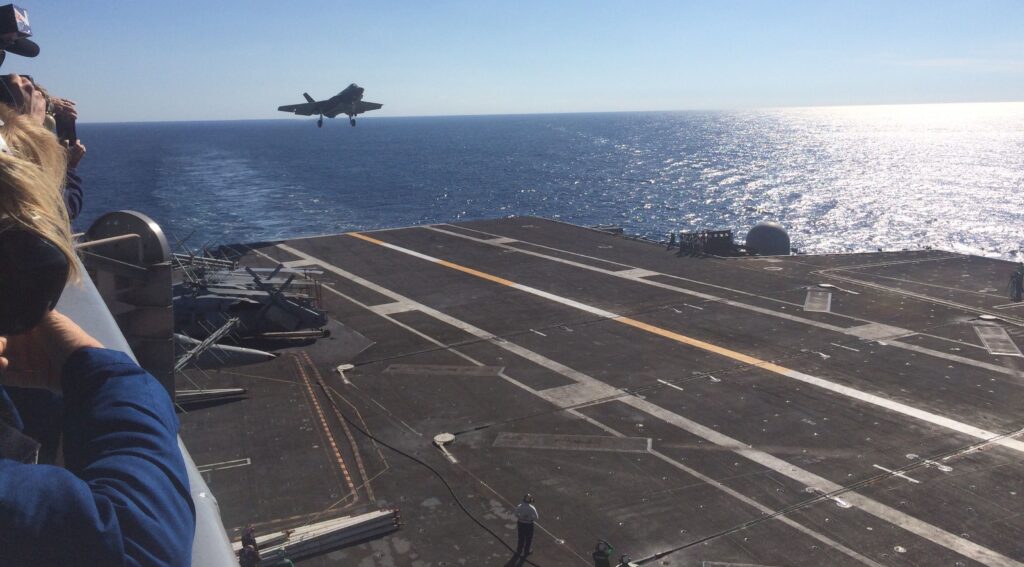 “You can move the reach of the carrier wing as you redeploy it and connect with joint or coalition assets. The carrier has a core ability to operate organically, but its real impact comes from its synergy with the joint and coalition force, which will only go up as the global F-35 fleet emerges.”
