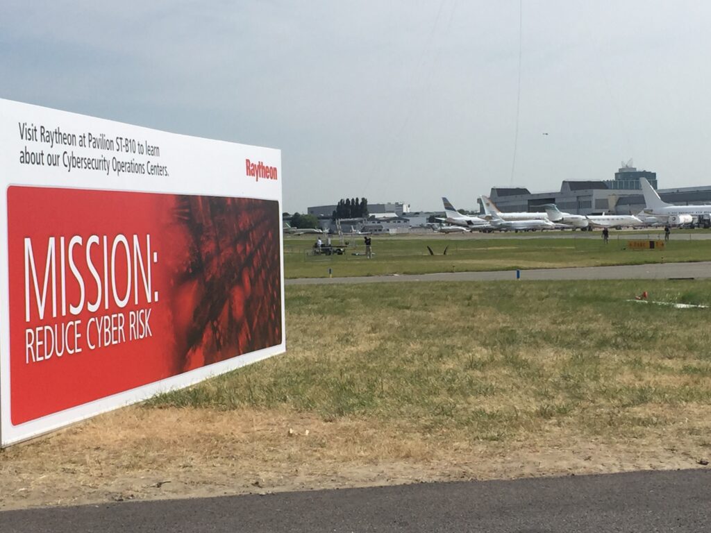 The best explanation I heard was simple: cyber is in everything because everything is networked or has a receiver, making it is vulnerable to cyber attack or hacking. “All of the systems at the air show are all interconnected,” Michael Daly, Raytheon’s chief technology officer for cybersecurity and special missions, said. Daly noted it was the first time the company had advertised or promoted cyber sales at an air show.