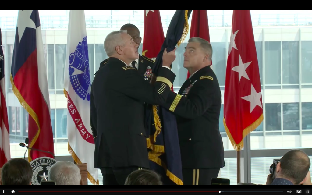 McCain’s family announced this morning that the famously combative Vietnam veteran had stopped treatment for brain cancer, which he’d begun in July 2017 — same month Esper was nominated. So almost every speaker at the Army Futures Command ceremony in Austin at noon made sure to praise him at least in passing. But Gen. Milley went much further and honored the former Navy pilot as the father of Army Futures Command.
