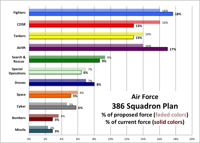 And while the bomber force gets the largest percentage increase under the proposed plan, it’s still a relatively small part of the force, going from nine squadrons to 14.