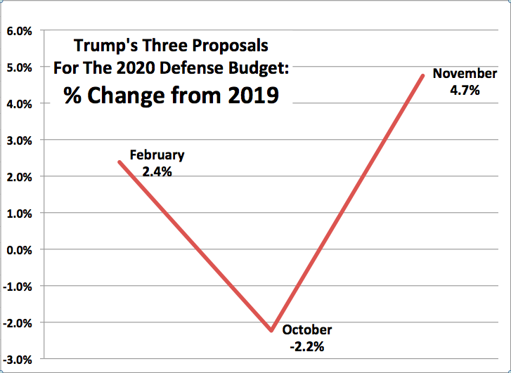 An announcement is expected this week that President Trump has decided to ask Congress for $750 billion for fiscal 2020, a massive increase from the $716 billion allocated to defense in 2019, which Trump just last week referred to as “Crazy!” And it comes a little over a month since the White House to ordered the Pentagon to forget the $733 billion request it had planned and submit a $700 billion budget in 2020 instead.