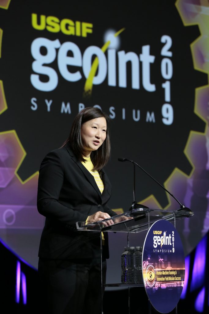 Because no discussion of intelligence and data can be had without mentioning security, Bingen noted the need for the GEOINT community to “collectively elevate our focus on security,” citing threats in particular from Chinese espionage. She reminded the audience of the Protecting Critical Technology Task Force set up last year by Patrick Shanahan, then-deputy DoD secretary, to integrate protection efforts across DoD. “We are working with (undersecretary of Defense for sustainment and acquisition) Ellen Lord and her acquisition sustainment team to make security a fourth pillar in acquisition alongside cost, schedule and performance.” She asked industry for its help in taking steps to protect themselves, including at the subcontractor supply chain level.