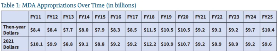 Indeed, the CSIS study finds that MDA’s top line submission for 2021 of almost $9.2 billion is “a 14 percent reduction from the $10.7 billion appropriated in 2020 but very close to the projection for 2021 in last year’s budget.” The study adds that “while the Future Years Defense Program (FYDP) projection for MDA declines for two years [to $8.9 billion] it rises again to $9.2 billion in 2024 and $9.6 billion in 2025.”
