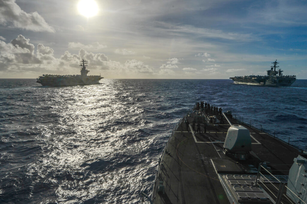As the Chinese bullied their neighbors on the other side of the Luzon Strait, two American aircraft carriers arrived in the Philippine Sea for the first time since 2018, kicking off days of joint operations in the waterway.