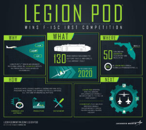 The Air Force is driving toward initial operational capability (IOC) for the Legion Pod by the end of the year, under a rapid testing program managed by the Operational Flight Program Combined Test Force (OFP CTF). The unit is unique in that it reports both to Air Combat Command and Air Materiel Command, and is empowered to do developmental and operational testing at the same time — unlike traditional sequential testing programs.