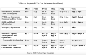 Commerce, in a May cost estimate cited in the NAPA report, puts its own costs for buying commercial SSA data between $57.4 million and $72.4 million through 2024.