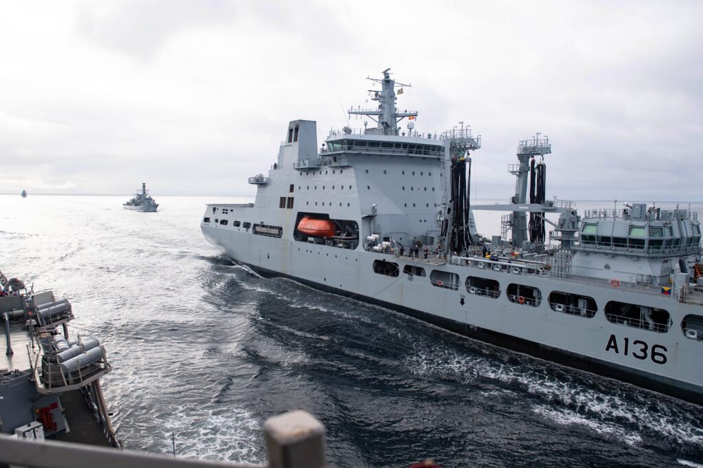 The UK-led exercise is being led by the Royal Navy frigate HMS Sutherland, joined by the Arleigh Burke-class destroyer USS Ross, British Royal Fleet Auxiliary RFA Tidespring, and Royal Norwegian frigate HNoMS Thor Heyerdahl, and Danish and Norwegian patrol aircraft.