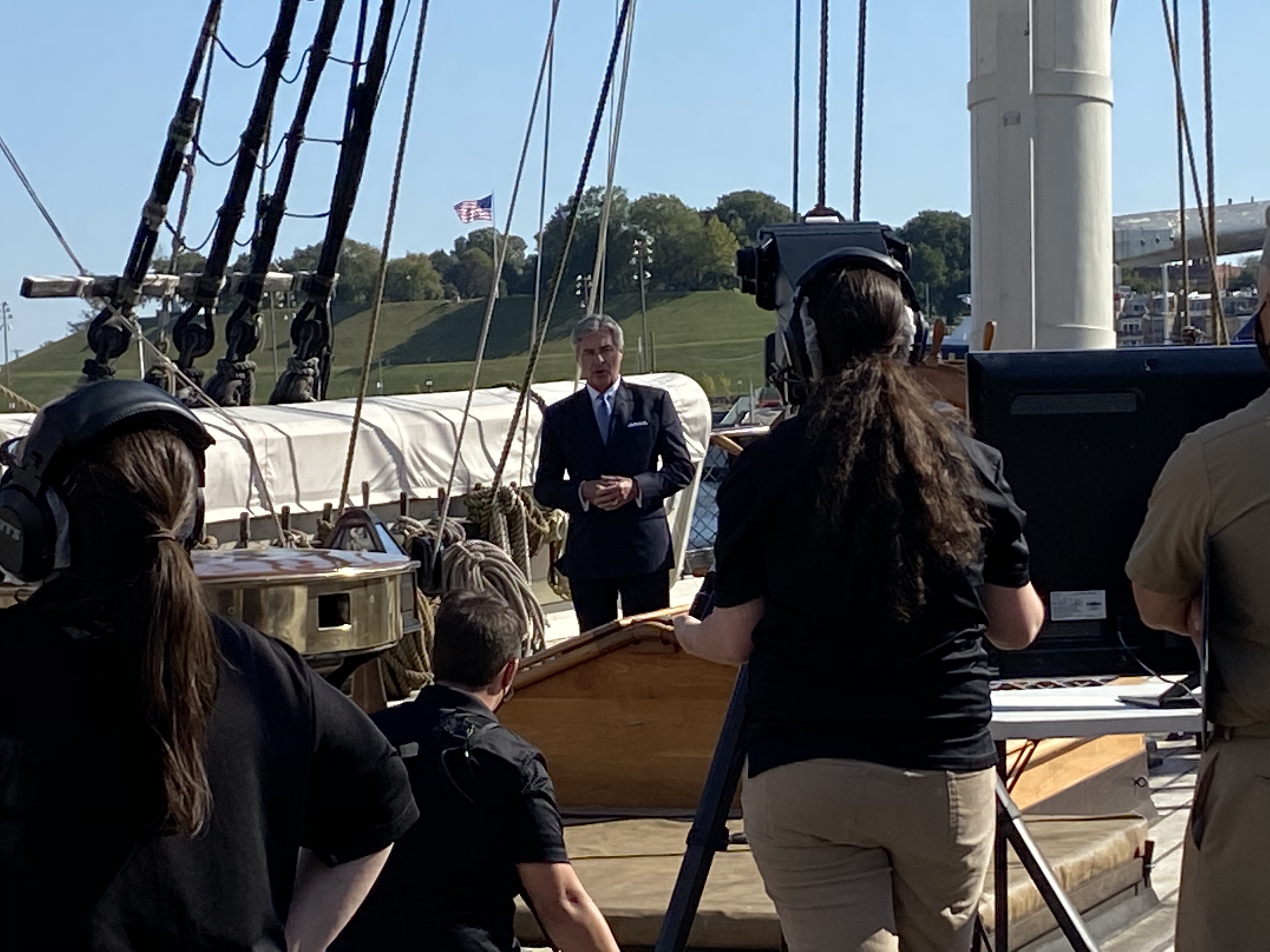 Braithwaite spoke with me and another reporter on the deck of the decommissioned USS Constellation as a warm breeze snapped the flags above Fort McHenry in the background. He had just shot a video clip announcing the ship will be the namesake for the new class of frigates the service is building.
