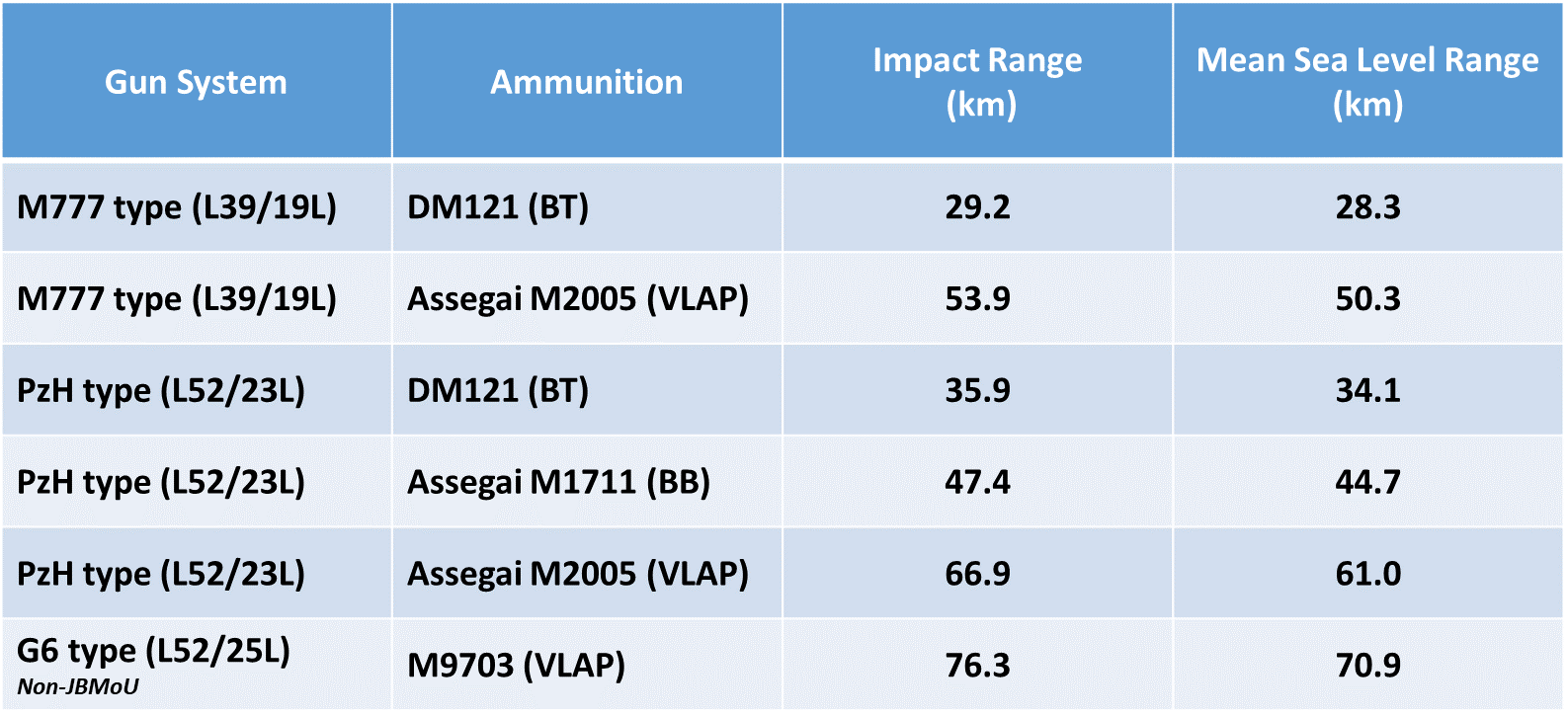 The LRCD generated three world-record-worthy range achievements. Rheinmetall’s integrated solutions achieved an astounding 76 kilometer range with the G6 Howitzer (L52 / 25L) test platform at ATR – the longest known distance with conventional 155mm ammunition in history. Using Rheinmetall’s PzH 2000 gun system (L52 / 23L), Rheinmetall achieved a range of 67 kilometers. The G3 Towed 155mm L39-system resulted in a range of 54 kilometers. In comparison, the US Army’s XM1113 Increment 1 projectile program is designed to achieve 40 kilometers range from a L39 system to replace the legacy M549A1 RAP’s current 30 kilometer range.
