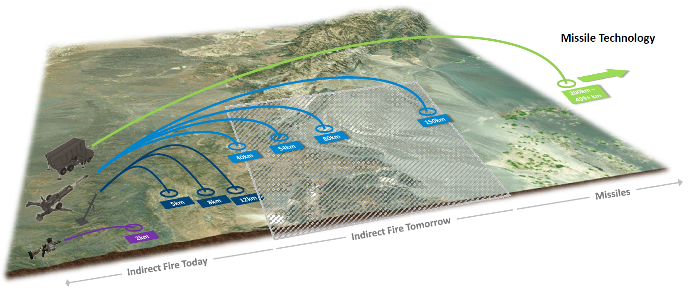 Recognizing challenges ahead for Western militaries, Rheinmetall has consistently invested in the artillery portfolio over the last 20 years. As armies now return to address the capability gaps that emerged, Rheinmetall has products and technologies that are ready now to solve the challenges of next-generation artillery fires such as those being confronted in the US Army’s Extended Range Cannon Artillery (ERCA) program. Rheinmetall’s unmatched horizontal and vertical integration in weapon systems, charges and ammunition enable it to offer extended range artillery solutions today that deliver greater than 60km ranges with conventional 155mm munitions. In the very near future, Rheinmetall will achieve greater than 80 km firing ranges.