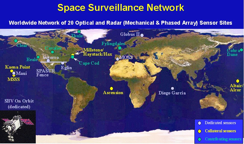 The US currently operates a network of ground-based sensors (both radar and optical telescopes) and satellites to watch on-orbit activities, known as the Space Surveillance Network. However, that network largely is based on old technology, with many of the sensors originally optimized to look for Soviet nuclear missile launches. For example, there is a dearth of sensors in the Southern Hemisphere.