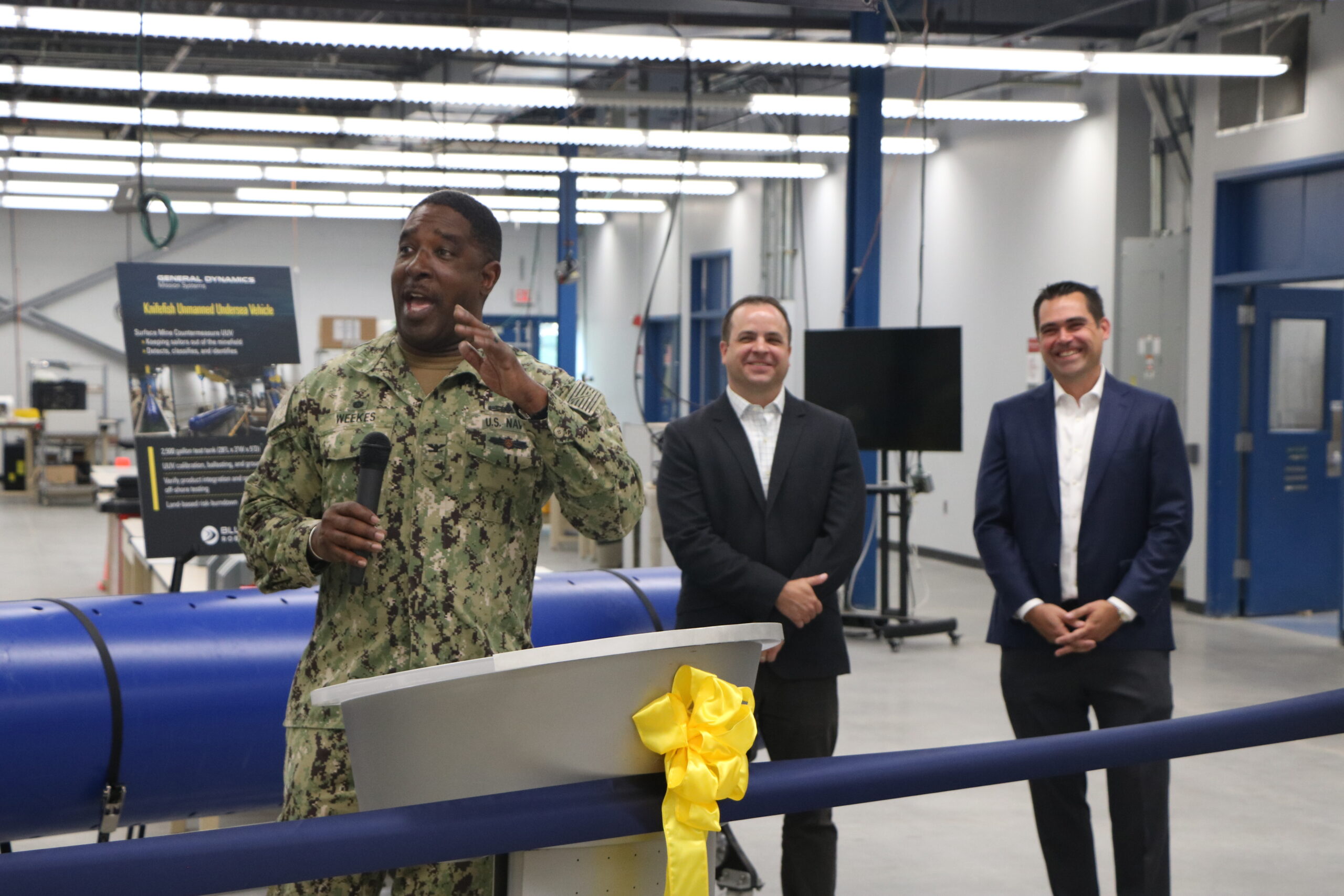TAUNTON, MASS.: General Dynamics Mission Systems on Friday opened a new manufacturing facility here dedicated to producing and testing the Knifefish, the Navy’s unmanned undersea vehicle for detecting buried and bottom mines.
