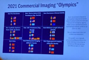 The study, which Gauthier explained was undertaken using hard data although there were some internal IC disagreements about judging methodologies, also is part of the impetus for the IC’s renewed focus on supporting US remote sensing firms with contracts for data, imagery and analytics. While the IC community was generally aware that US firms weren’t always in the lead, the “Olympics” results are practically stupefying senior policy-makers, he said.