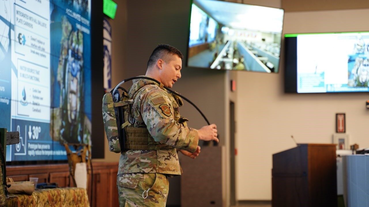 O’Brien’s solution looks similar to a CamelBak and is worn like a backpack, but with a chill pad on the inside of the vest. The system is designed to be integrated into ballistic plate carriers and is rigged so ice water flows from the water pouch into the pad, cooling the soldier’s torso. The prototype can produce cool temperatures for up to 14 hours, according to O’Brien. And in tests in 2019, he said the cooling system reduced the temperature of the vest by 31 degrees.