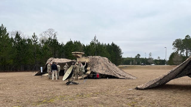 Ft. Stewart, Ga.: Tucked inside the heavy woods of southern Georgia, Vietnam-era M1068s are positioned across the muddy swampland, transmitting invisible digital information between the thick tree trunks and through the canopy of the forest.
