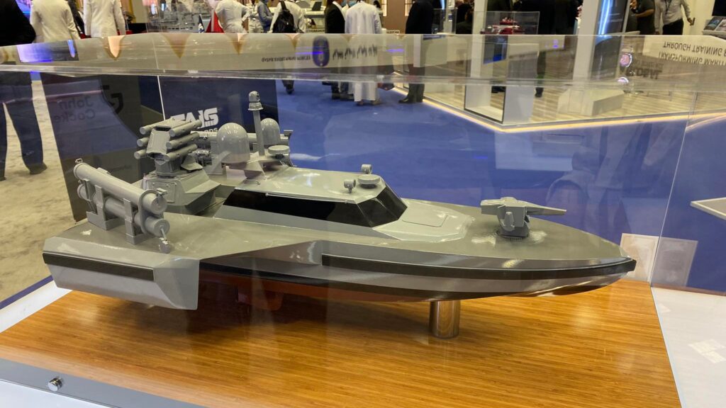Ares Shipyard and Meteksan Defense unveiled models for two variants of unnamed armed surface vehicle, known as the ULAQ, at the show. Models of ULAQ PSV, Port Security Variant and ULAQ ASW anti-submarine warfare also made their official debut in Doha. The cooperation around the ASW variant was announced in 2021, with the mockup design making its first trade show appearance here.