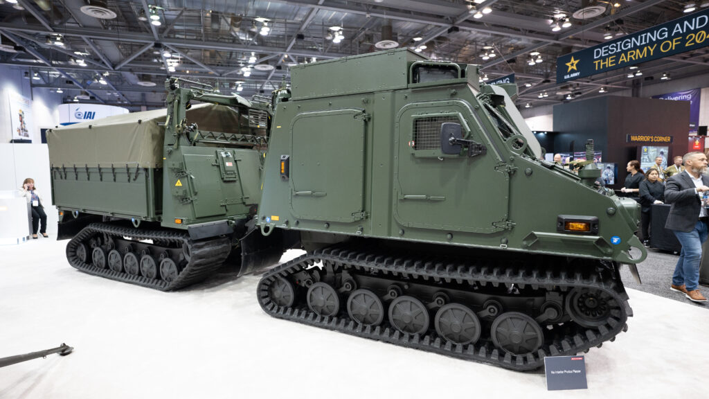 The BvS10 all terrain vehicle was displayed at a booth belonging to BAE SYSTEMS, showing off what the company said was the platform’s equipment flexibility for a variety of missions. (Brendon Smith / Breaking Defense)