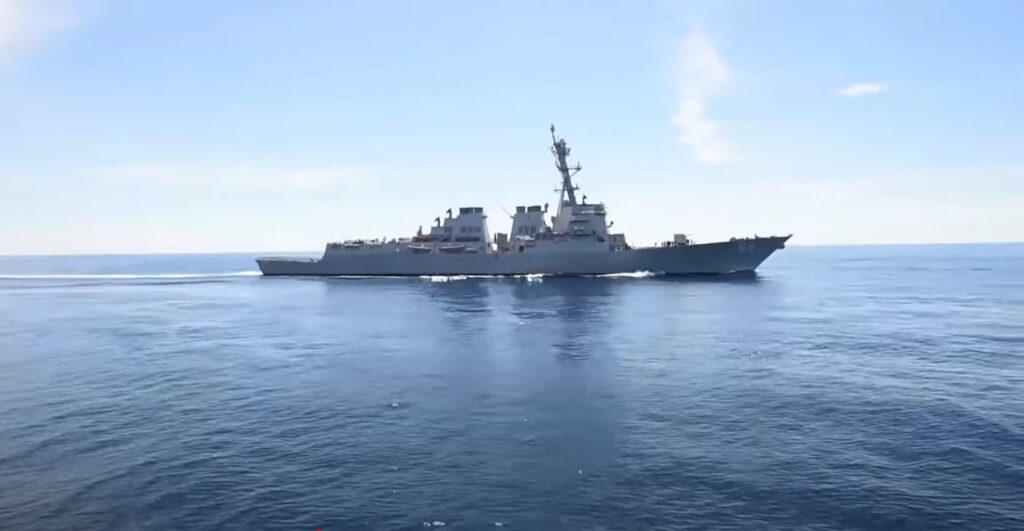 A Saildrone floats above the show floor at Sea Air Space 2023. Saildrone has become a common tool in the CENTCOM region, and was infamously kidnapped by Iranian forces in 2022. (Aaron Mehta/Breaking Defense)