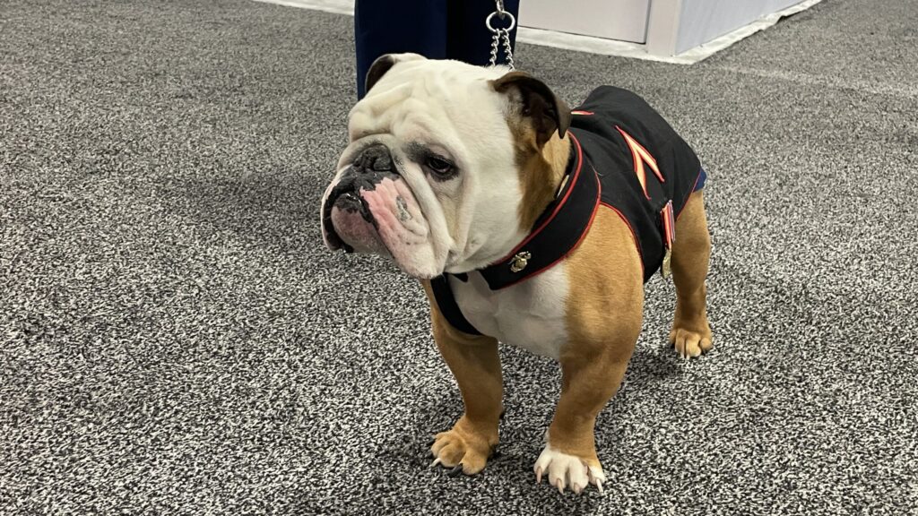 Chesty makes his rounds on the show floor at Modern Day Marine on June 27, 2023. (Ashley Roque / Breaking Defense)