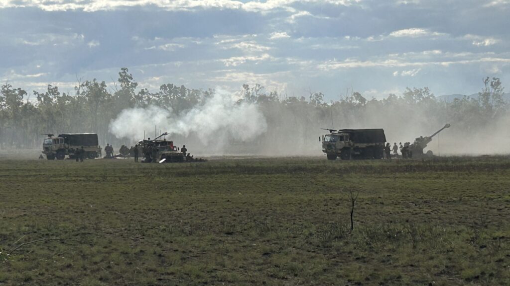 SHOALWATER BAY, Australia — The crack and boom and smoke and smell of 155mm artillery shells fired from Australia, South Korea and the United States filled the air here, interspersed with the thud of laser-guided bombs from US F-35Bs, the whoosh and crack of HIMARS missiles and the unique thump of the 105mm and 30mm guns on an AC-130 gunship, as more than a dozen countries took part in Australia’s premier exercise, Talisman Sabre.