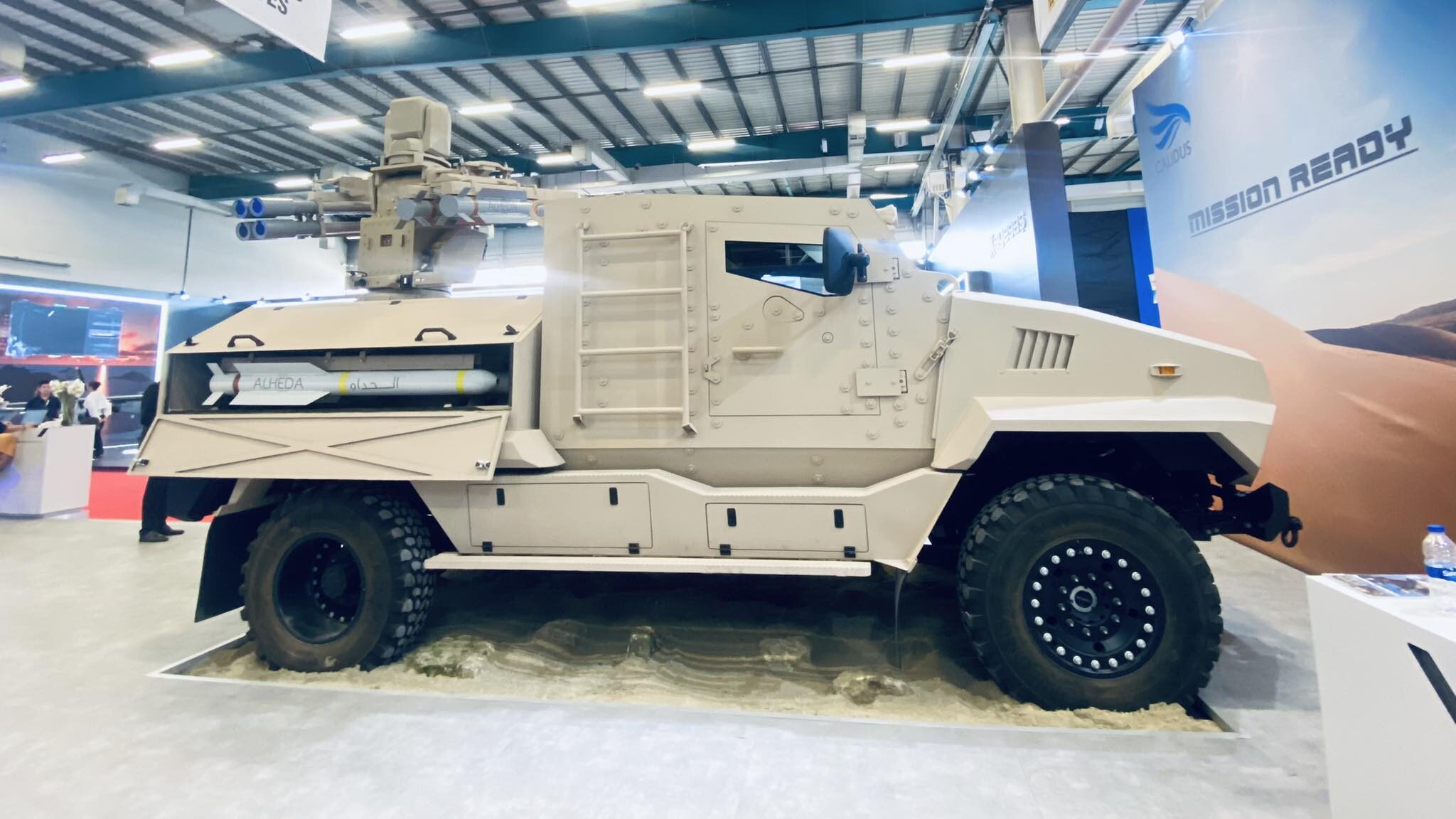 Also here, the UAE firm Calidus, in partnership with the nation’s Tawazun Council, unveiled a mobile missile launcher. Alheda, the Calidus-made vehicle hosting the missile launcher, is a lightweight wheeled launcher with the capability to fire four Alheda missiles and eight logir missiles. It has a remote firing mode and is expected to enter the testing phase in three months.