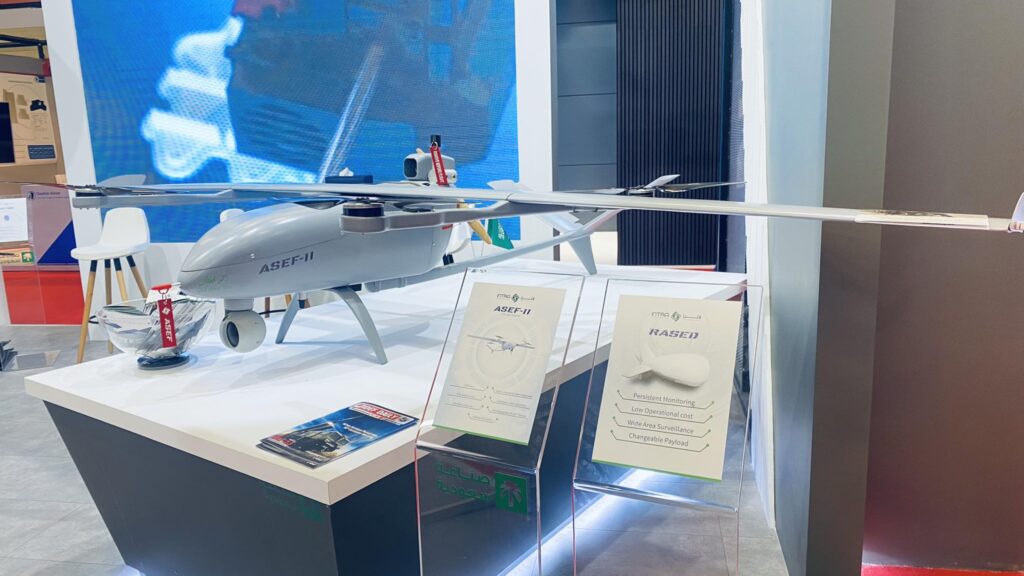 ASEF-I was showcased by the company at the first-ever Saudi World Defense Show 2022, and have a fixed wing architecture with vertical take-off and landing characteristic. ASEF-I can carry up to 26 kg payload, mainly an optical system for surveillance and reconnaissance, according to company specifications.
