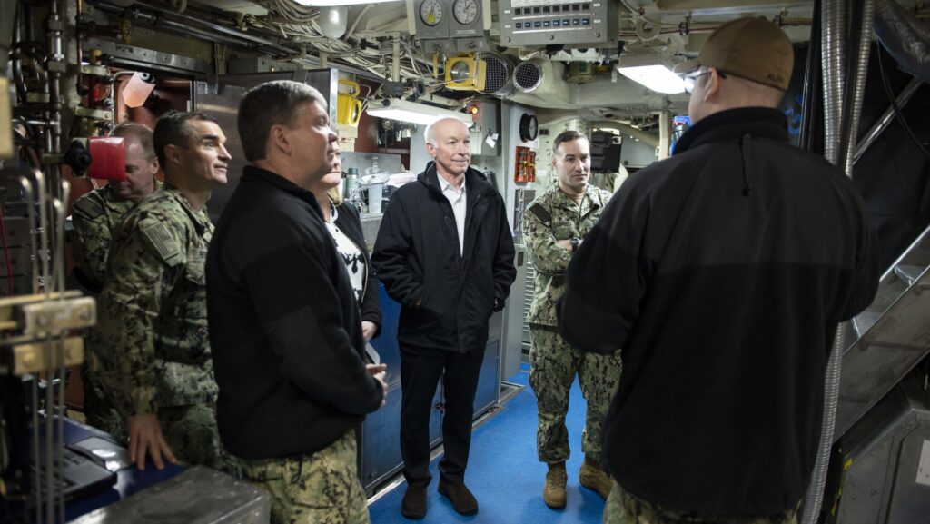 But on Capitol Hill, Navy Under Secretary Erik Raven; Vice Adm. William Houston, commander of naval submarine forces; Rear Adm. Jonathan Rucker, program executive officer for attack submarines; as well as Mara Karlin, who is performing the duties of deputy under secretary of defense for policy, are testifying before the House Armed Services subcommittee on Seapower and Projection Forces about the submarine industrial base and the Pentagon’s role in bringing AUKUS to fruition.