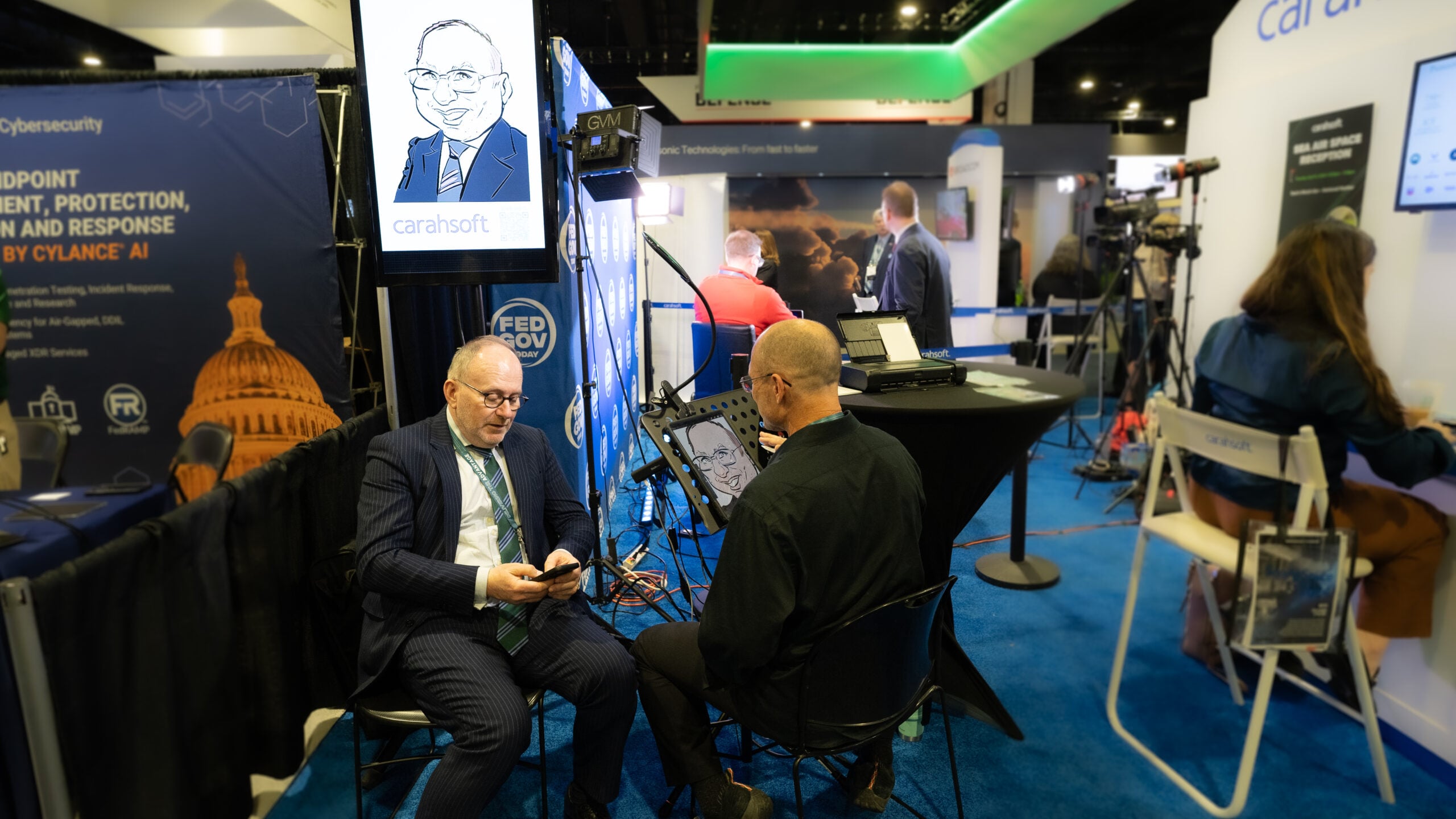 A cartoonist at the Carahsoft Booth was drawing caricatures of various attendees throughout the show. (Brendon Smith / Breaking Defense)