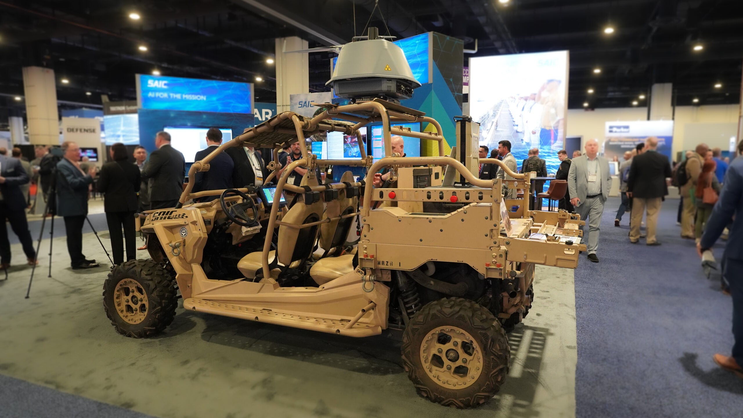 D-Fend Solutions and SAIC were showing off a mobile CUAS solution that allows modular configurability to tailor for mission specific goals. (Brendon Smith / Breaking Defense)