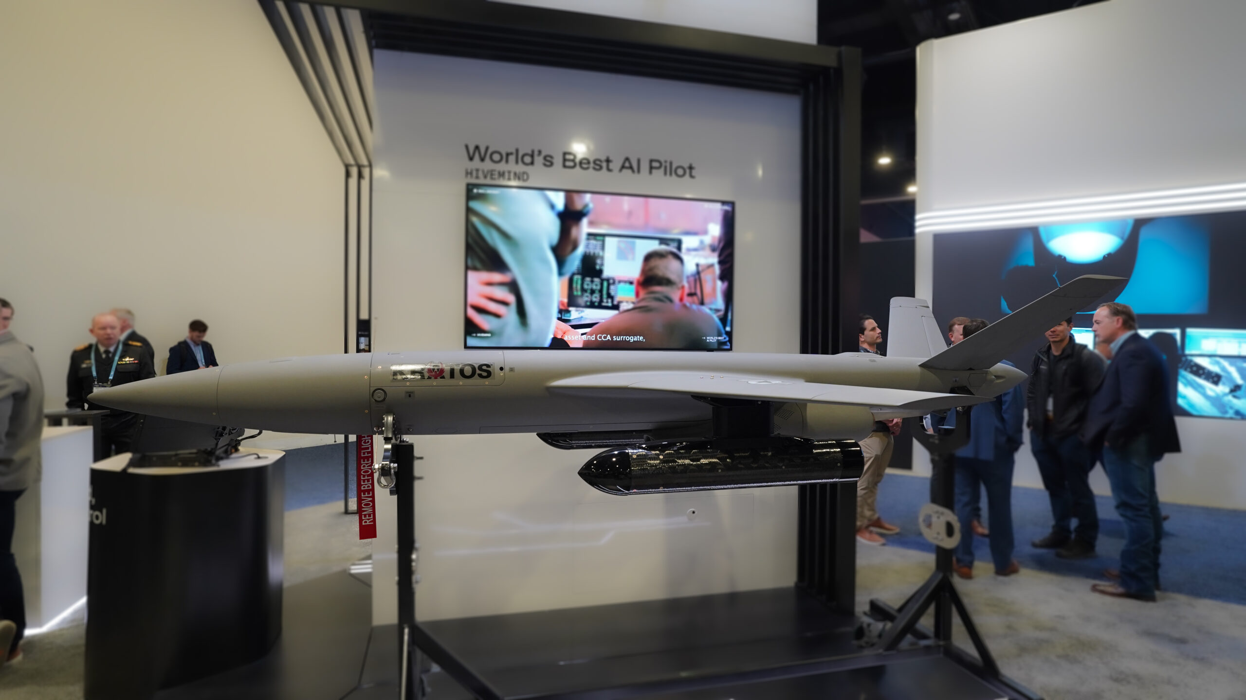Kratos is teamed with Shield AI on this system, which the companies say will deliver state of the art AI drone piloting and the ability to complete mission objectives without gps, waypoints, or comms. (Brendon Smith / Breaking Defense)