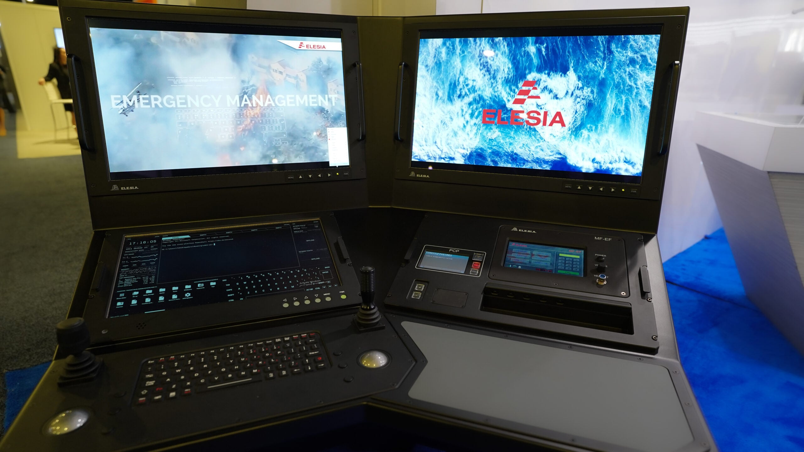 ELESIA's Single Operator MFC12 Console resists shock and vibrations on navy operations by "floating" within various shock absorbers. (Brendon Smith / Breaking Defense)