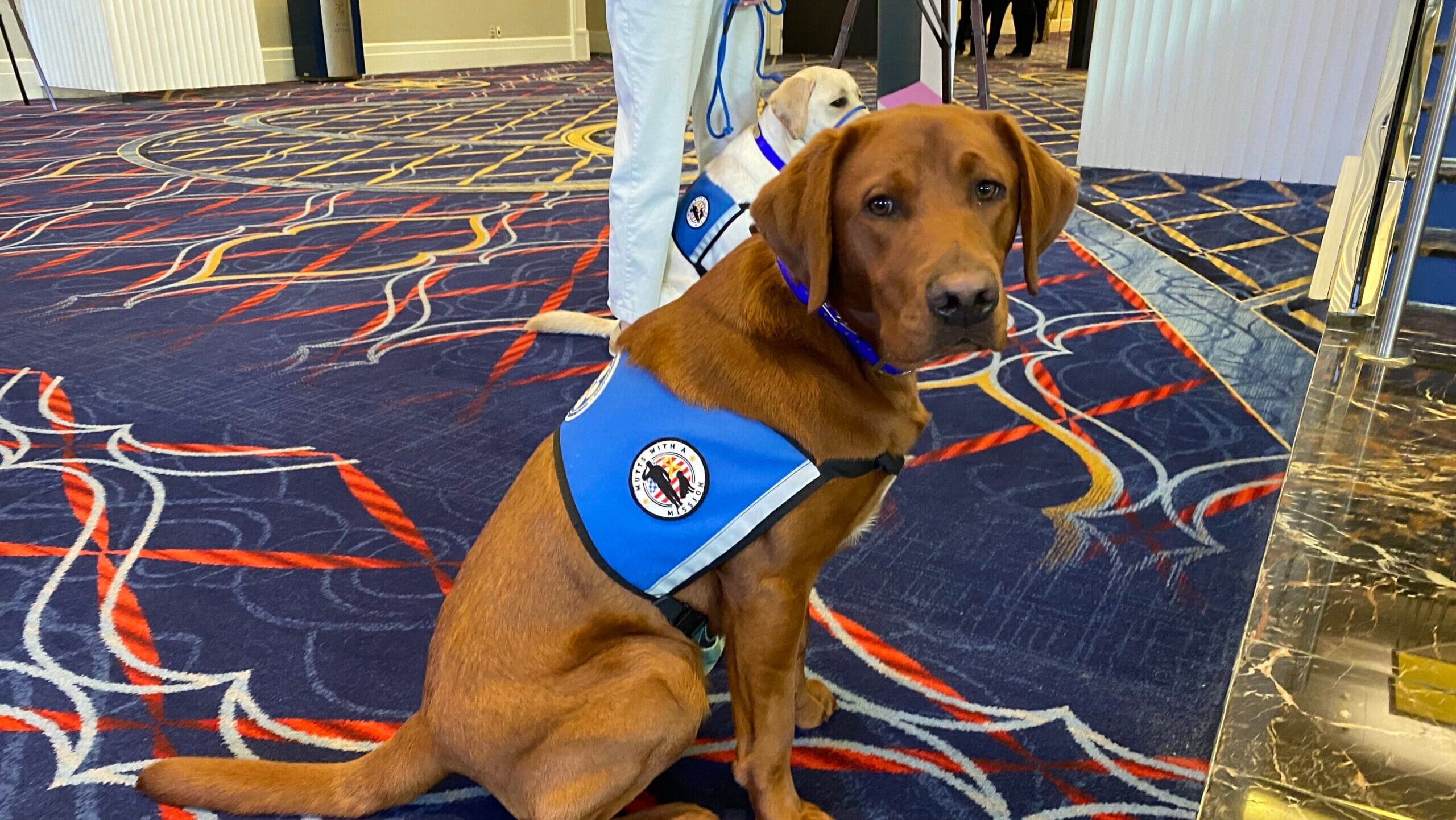 Rudder was a very good boy while touring the Sea Air Space show floor. Yes he was. (Aaron Mehta/Breaking Defense)