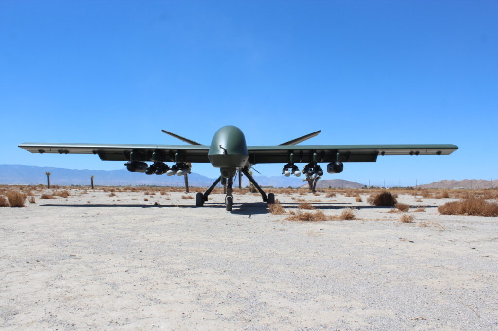 In its most recent test on April 13 at Yuma Proving Grounds, the Mojave hit ground targets using miniguns mounted on its wings for the first time — providing an alternative to precision-guided missiles typically used by General Atomics drones, Brinkley said.