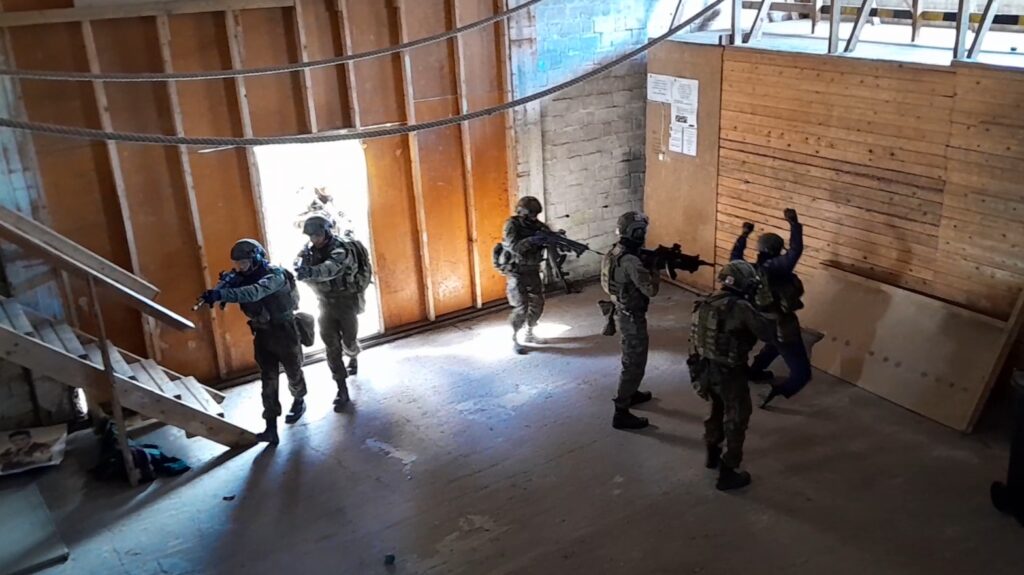 SANTAHAMINA, Finland — A light metallic rattle comes from one end of the warehouse, a grenade bouncing on the concrete floor after it was tossed inside through an open doorway. There’s a loud bang, and then camouflaged troops pour into the first room, rifles up and at the ready, one after the other.