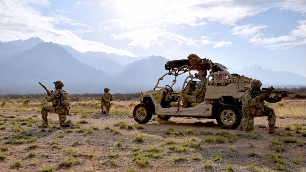 Cobos noted that 1st Space Brigade soldiers already are starting to train in realistic environments where space operations are taking place “within hand grenade range” of enemy forces. In a recent exercise, he said, a 1st Space Brigade soldier “conducted a high altitude, low opening (HALO) tandem parachute jump with the 10th Special Forces Group at the National Training Center” to practice penetrating deep into enemy territory to conduct counterspace activities — though he did not provide details related to the secret squirrel-style exercise.