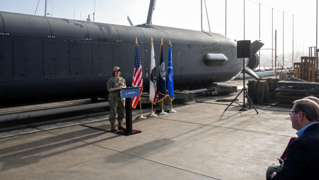 XLUUV is the Navy’s largest developmental unmanned undersea vehicle program, initiated in 2017. In 2019, the service tapped Boeing to begin fabricating prototype vehicles. In 2023, the Navy took receipt of the first prototype.