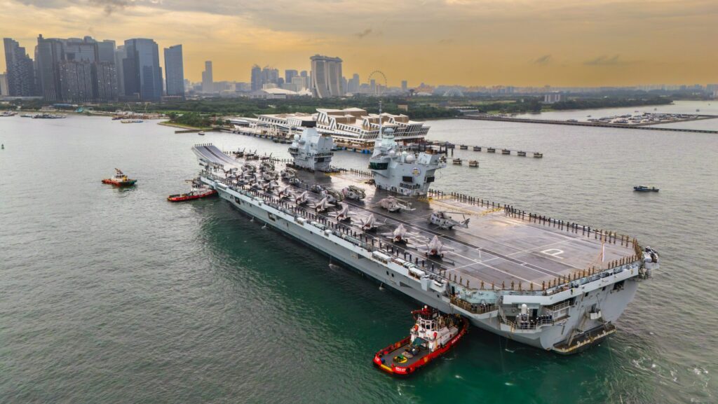 Accompanying the HMS Prince of Wales as the Royal Navy destroyer HMS Dauntless, frigate HMS Plymouth and Royal Fleet Auxiliary Tidespring along with warships from Canada, New Zealand, Norway and Spain. An Australian destroyer is scheduled to join CSG25 upon the group’s departure from Singapore.