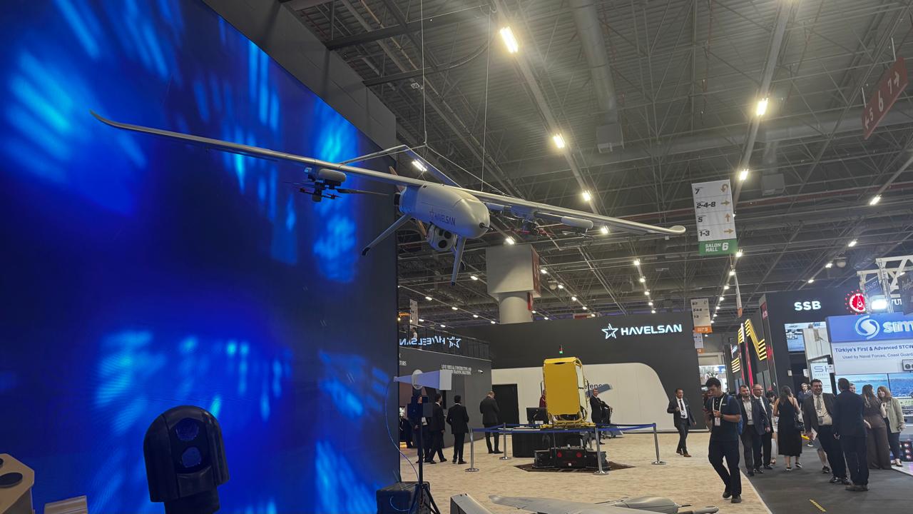 The firm also debuted Bulut UAV, which is a fixed- wing surveillance drone, that the company says has six hours of endurance time, and can fly up to 8,000 feet. The new drone is Havelsan’s latest edition to its swarming unmanned systems capabilities, and will join BAHA UAV, SANJAR USV and Burkan UGV in the company’s digital troops concept.