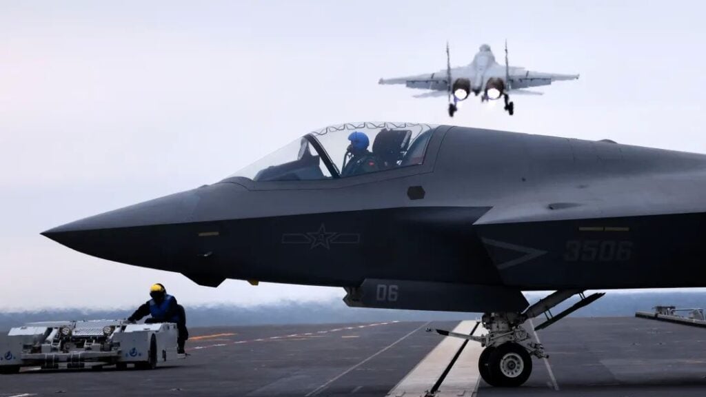 The visuals, first published by the official social media channels of the Chinese military and the People’s Liberation Army’s 81.cn news portal, showed the Shenyang J-15T, J-35 fighters and Xi’an KJ-600 airborne early warning aircraft being launched from the Fujian’s electromagnetic catapults.