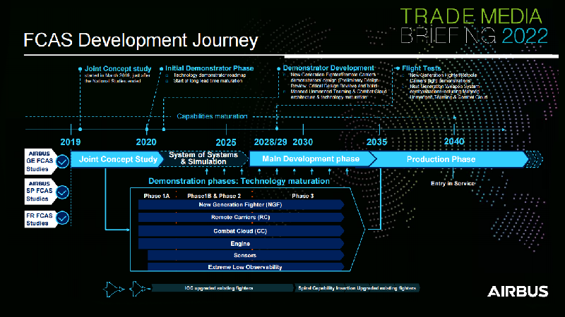 Though the leadership dispute between Dassault and Airbus has been an open sore for months, the need to agree to a resolution is heightened by the risk of delay to FCAS Phase 2 — planned to go ahead next year, but with a contract still to be negotiated. The milestone is critical for industry to develop technology demonstrators covering the NGF, its engine, remote carriers, a “combat cloud” and sensors.